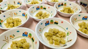(写真は離乳初期食です。年齢によって形、固さ、盛り付け量を