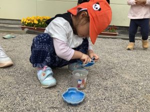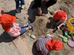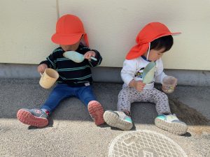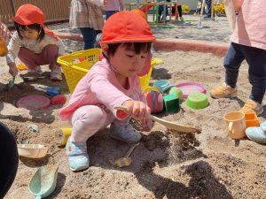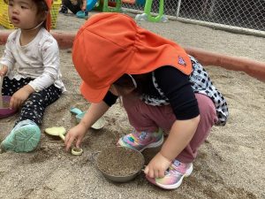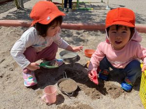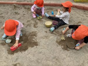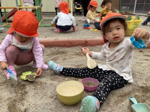 砂場ではままごと遊びでご飯作りを楽しむお友だちもたくさん😊