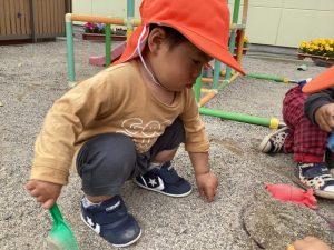 なにしよっかなーと園庭を探索して考えるお友だちや