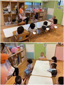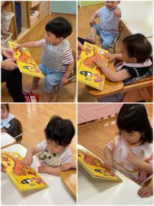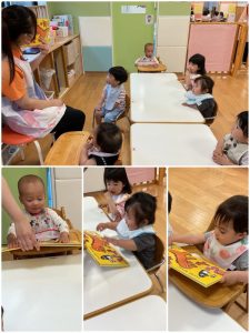今週の絵本ブログはいちご組さんが「たまごのえほん」を見ている様子をお伝えします😊