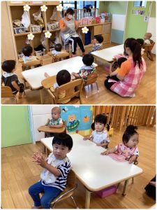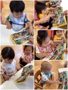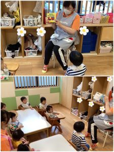 絵本の前にはみんなで「🎵はたらくのりものえほん」のお歌を手拍子をしながら楽しみ