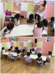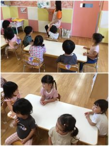 今週のブログはりんご組さんが「つやっつやなす」の絵本を見ている様子をお伝えします🍆
