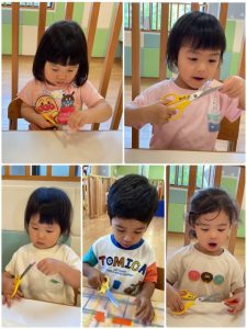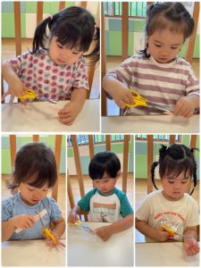 おつきさまでは初めてハサミに挑戦✂️