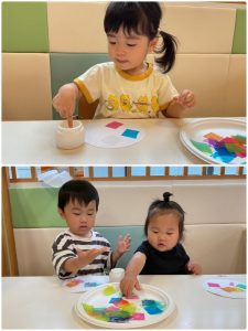 絵の具をペタペタ🎵