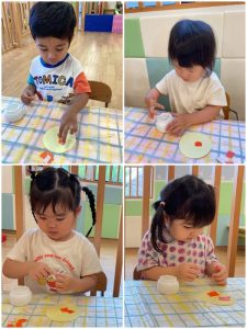 いろいろな技法で制作を楽しんでくれたりんご組さんでした🍎