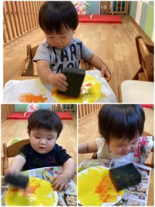 力強くペタペタしたり、スポンジをギュッと絞ったりしてきれいなお月様を完成させてくれました👏🏼