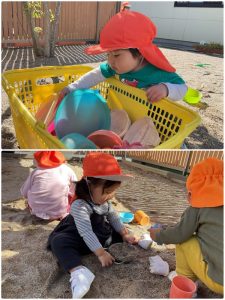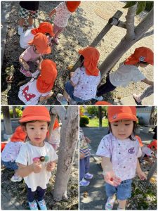 園庭でも元気いっぱいで遊んだもも組さん🍑といちご組さん🍓