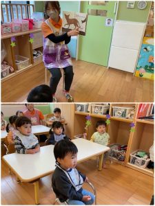 動物が出てくると「あっ✨ぞうさん🐘」「あっ、うさぎさん🐰」と喜んでくれたいちご組さん🍓