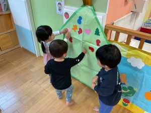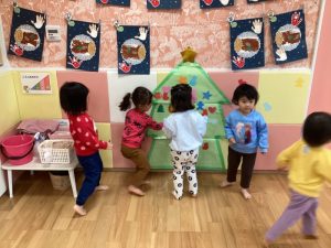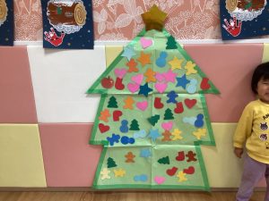 お歌が終わったらクリスマスツリーの飾り付けをクラスに分かれて楽しみましたよ😌