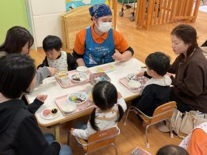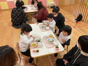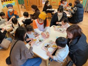 いつも食べている給食を保護者の方に食べて頂いたり、頑張って食べている姿を見て頂きました😄