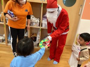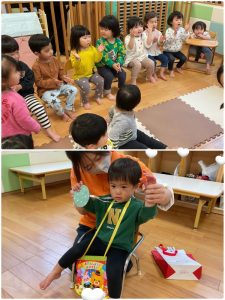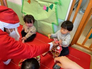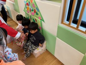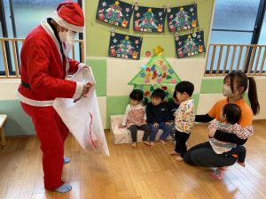 保育園前のおじいさんサンタさんがプレゼントを持ってきて下さいました🎁