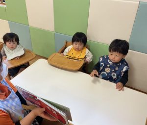 今週の絵本ブログはももぐみさんが「おべんとうバスのかくれんぼ」の絵本を見ている様子をお伝えします🚌