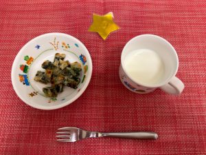 【1.2歳児食】エネルギー468kcal たんぱく質20.8g 脂質13.6g