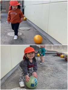 ボールを投げたり蹴ったりも上手になってきましたよ♡