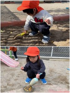もも組さん、いちご組さんは天気のいい日は園庭へ🎵