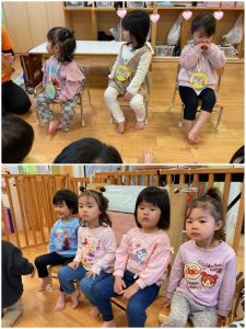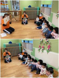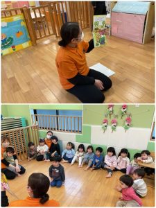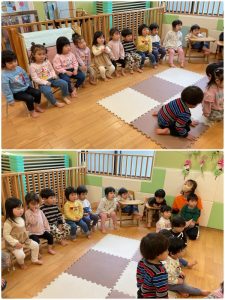絵本が終わってみんなで「うれしいひなまつり」の歌を歌ったて