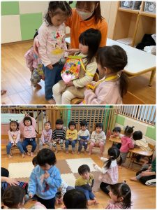 今月はいちご組さん1名とりんご組さんの2名のお友だちが誕生を迎えられましたよ🎁