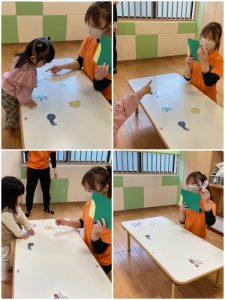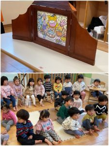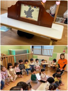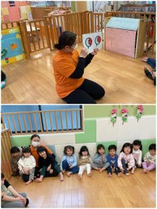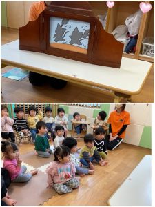 紙芝居では動物の影が出てきて「だれかな?」と当てっこ♡