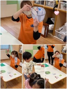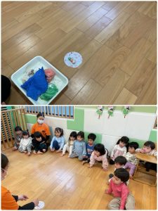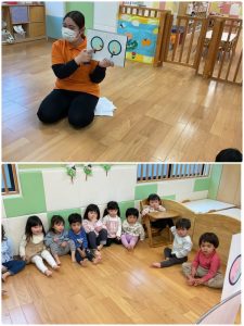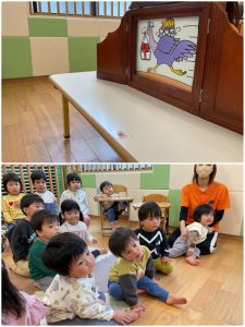 今月のお楽しみタイムは「だれかな?」の紙芝居と変身トンネルのマジックシアター🧙‍♀️