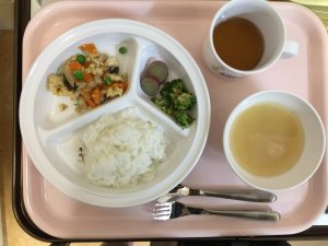 ♪♪本日のメニュー♬ ご飯・ハヤシ風シチュー・ひじきのサラダ・ブロコッリーの塩ゆで
