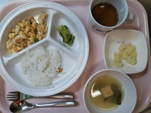 ♪♪本日のメニュー♬ ご飯・味噌汁・チキンソテー・野菜炒め・みかん缶