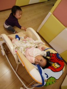 泣いてる声に寄っていってクーハンをゆらゆらしてくれました![]()