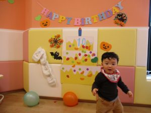 1歳になったお友だちにみんなでハッピーバースデーのお歌をプレゼント?