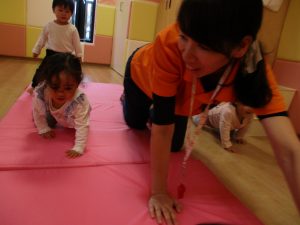 ハイハイにチャレンジしている1歳児さん