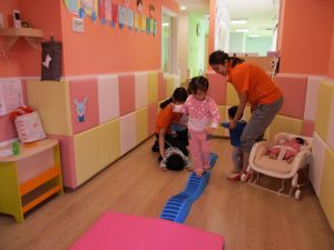 今回は、ハイハイ競争と平均台!