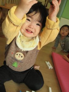このあと保育者と一緒に飛行機遊びも楽しんだ0歳児さんです![]()