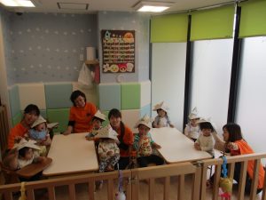 平成最後の週もいよいよラストです 子どもの日にあわせてみんなで制作したかぶとをかぶって集合写真を撮り...