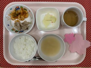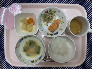 ♪本日のメニュー♬ ご飯・味噌汁・魚の西京焼き・含め煮・おかか和え