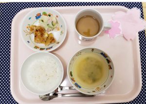♪本日のメニュー♬ ご飯・味噌汁・豆腐のつくね焼き・ポテトサラダ