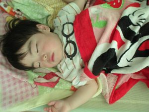 たくさん遊んでご機嫌で眠りについた1歳児さんの