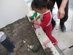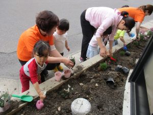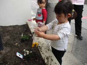 植えたお花をきちんと気にかけてくれる2歳児さんたち