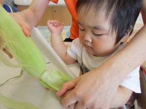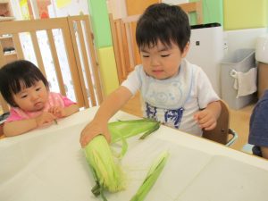 6月~9月が旬ということで、とうもろこしの皮むきをしました!!?