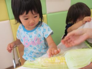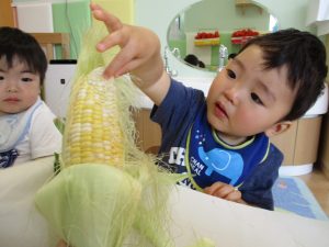 本物のとうもろこしが出てくると不思議そうに見ていましたよ~