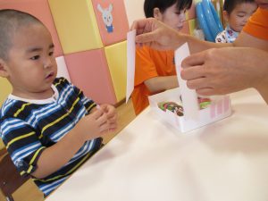 一つ一つの工程をゆっくりでも丁寧に取り組めるように保育者がしっかり関わってのチャレンジ!