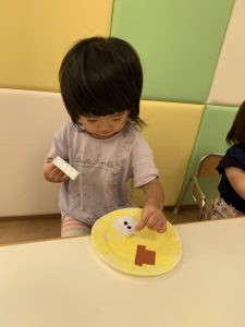 赤、青、黄の三原色を意識しながらブロック遊びも楽しみましたよ〜?