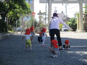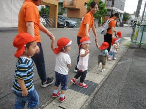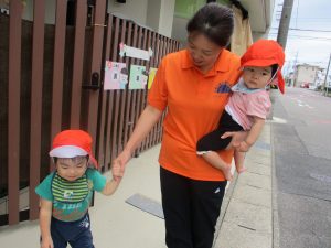 2歳児さんになるとお友だちと手をつないで歩くこともあります![]()
