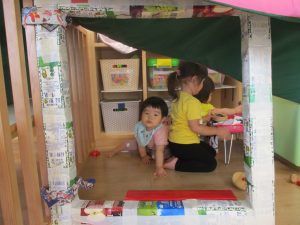 室内遊びでは小さなお部屋をつくっておままごと?
