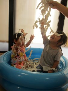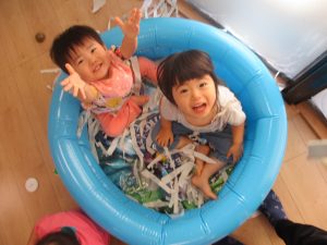 ⇓新聞遊びで盛り上がっていた1・2歳児さん![]()