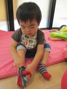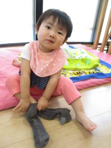 さあ靴下履けるかなぁ~![]()