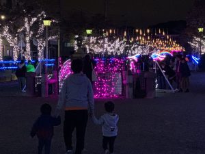 17時の点灯式を見ようと子供たちと参道へ