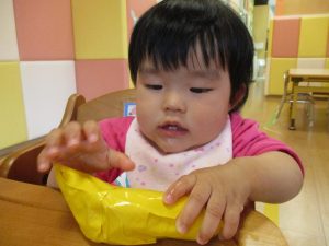 「おいしそう…」とバナナ?を握りしめていた0歳児さん?