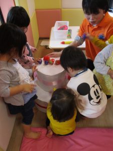 そして2歳児さんはブロックでこんな遊びをしました!