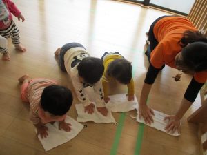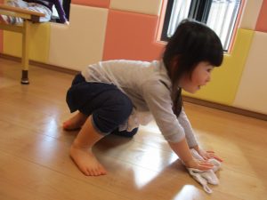 今週はみんなで保育室の雑巾がけもしましたよ?