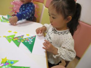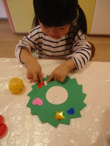 2歳児さんはクリスマスリース作りに挑戦!?