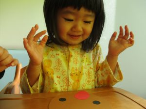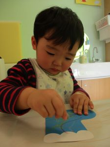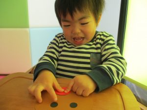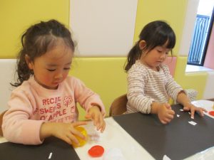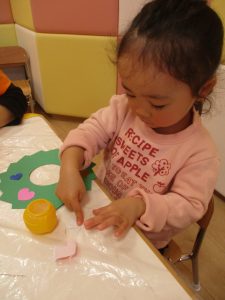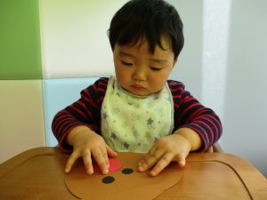 1歳児さんはトナカイに目と鼻をつけました。