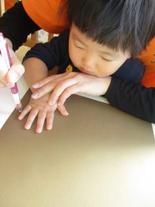 「見てみて~!」と手型を見せてくれたり?